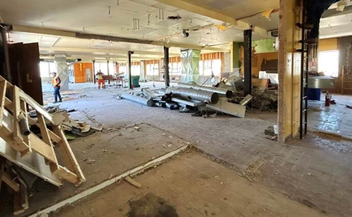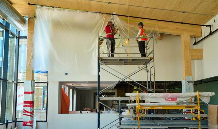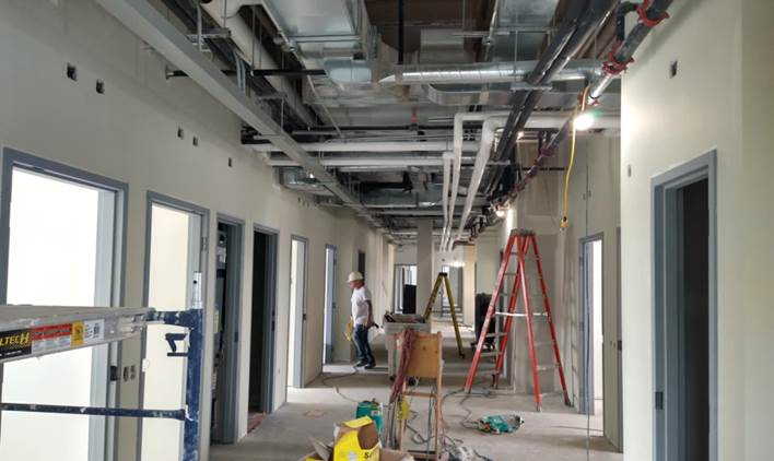Construction moves into final phases as major work is completed; Final finishing jobs such as tiling, installing mill work, electrical, plumbing and HVAC fixtures