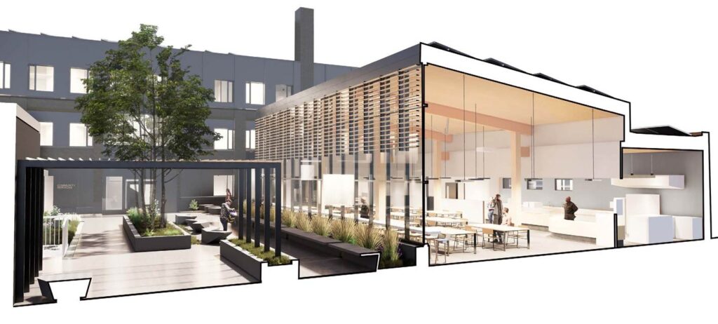 St. John’s Kitchen has been a hub of services for over 40 years. The newly built communal space will offer services and supports for up to 500 people a day, including a daily meal, hampers, showers, laundry, washrooms and access to a wide range of community supports.