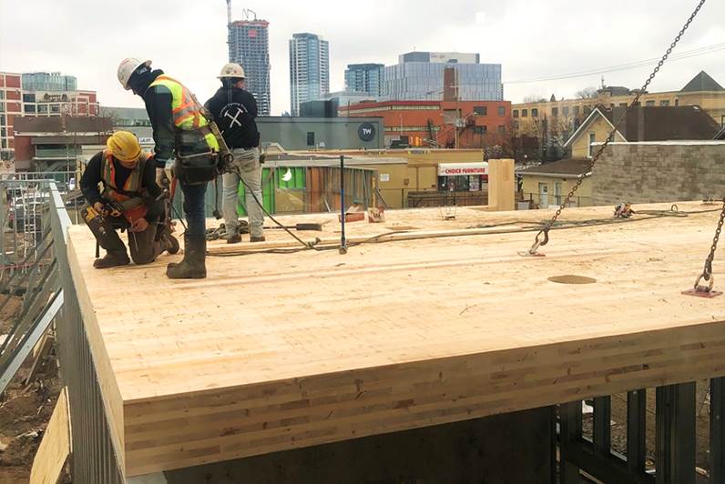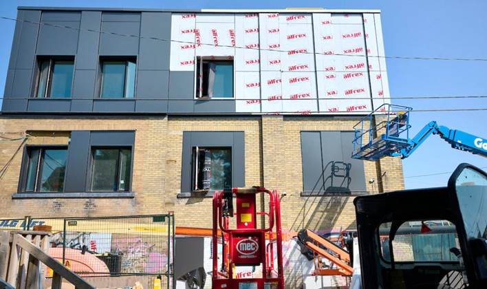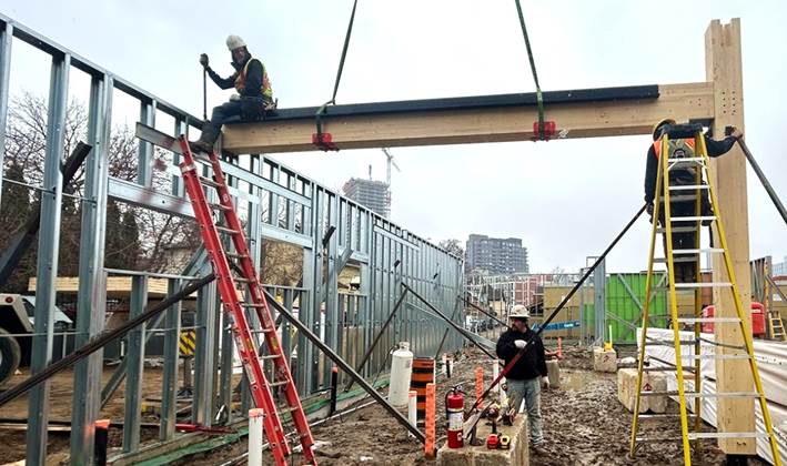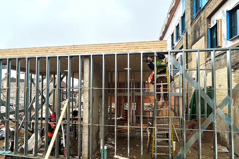 Workers begin building the third floor addition that will include 22 units of housing.
