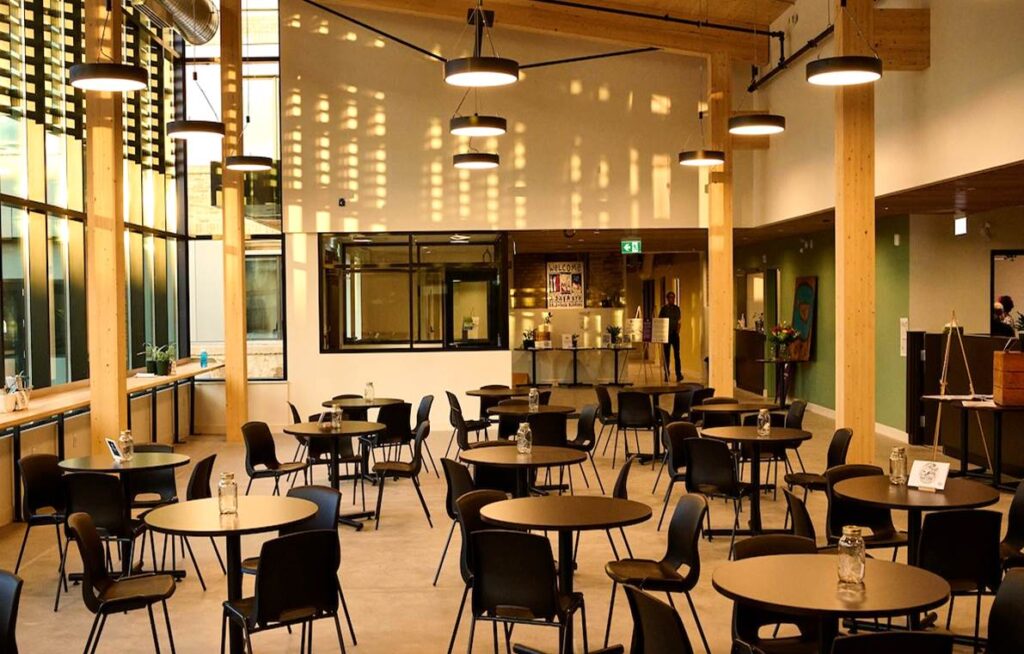 Large and open communal space for serving the daily meal and hosting community events