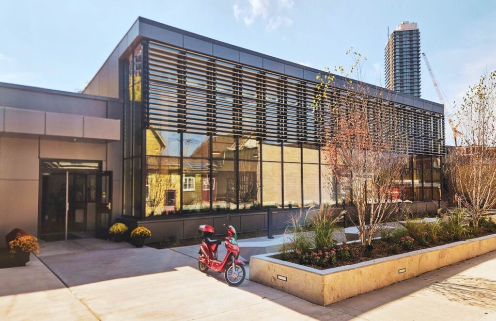 Adaptive and sensitive reuse of the warehouse building maintains the industrial aesthetic of the neighbourhood. In recreating the site, we followed conservation practices to ensure the heritage of the building was respected