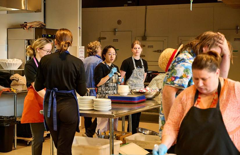 A small community kitchen for residents to access meals, snacks and drinks