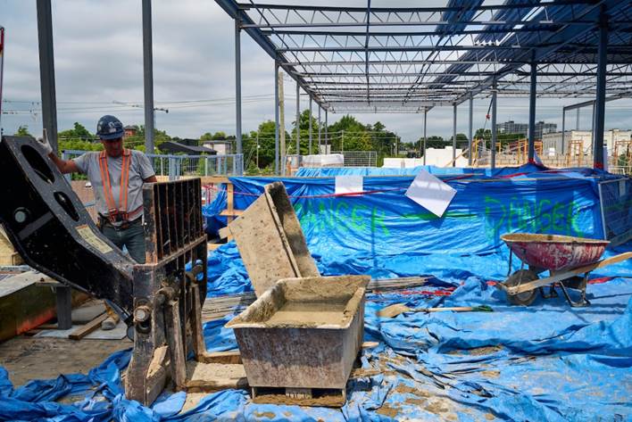 The third floor structure is built and excavation proceeds for the foundation of the new St. John's Kitchen building