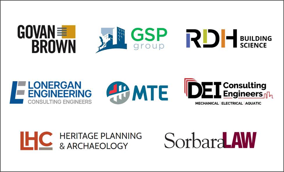 The design team is in place including GSP Group Inc., RDH Building Science Inc., LHC Inc. (Heritage consultant), MTE Consultants Inc., Lonergan Engineering (electrical), ZON Engineering Inc, DEI Engineering, Govan Brown Project Contractor, Sorbara Law